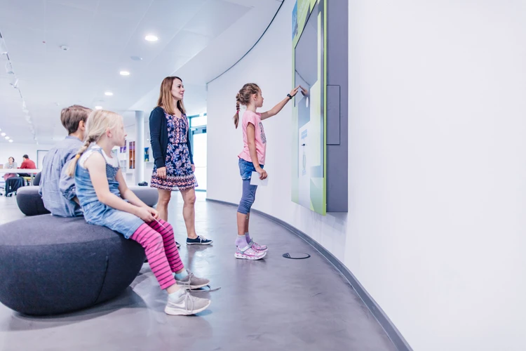 Die Klasse startet mit einer kurzen Einführung in unsere interaktive Ausstellung. Danach entdeckt ihr in Kleingruppen selbstständig die Themen – spielerisch und spannend – über unser digitales Klima-Quiz. Punkt für Punkt vertieft ihr euer Wissen. Zum Schluss werten wir gemeinsam aus: Welche Kleingruppe holt den Sieg?